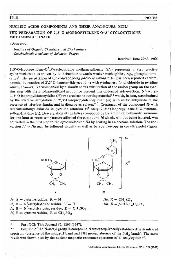 Nucleic acids components and their analogues. XCII. The preparation of 2',3'-O-isopropylidene-O2-5'-cyclocytidine methanesulfonate