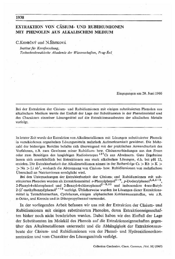 Extraktion von Cäsium- und Rubidiumionen mit Phenolen aus alkalischem Medium