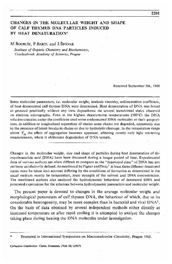 Changes in the molecular weight and shape of calf thymus DNA particles induced by heat denaturation
