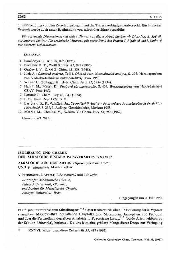 V. Preininger, J. Appelt, L. Slavíková and J. Slavík