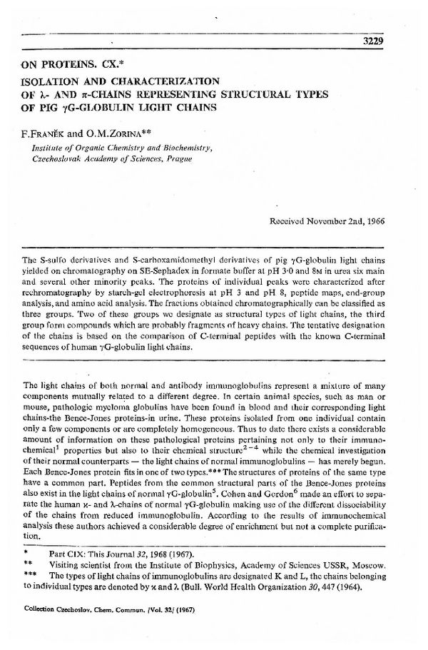 On proteins. CX. Isolation and characterization of λ- and π-chains representing structural types of pig γG-globulin light chains