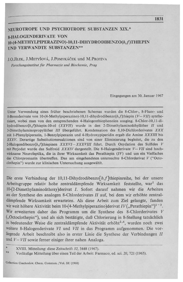 Neurotrope und psychotrope Substanzen XIX. 8-Halogenderivate von 10-(4-Methylpiperazino)-10,11-dihydrodibenzo(b,f)thiepin und verwandte Substanzen