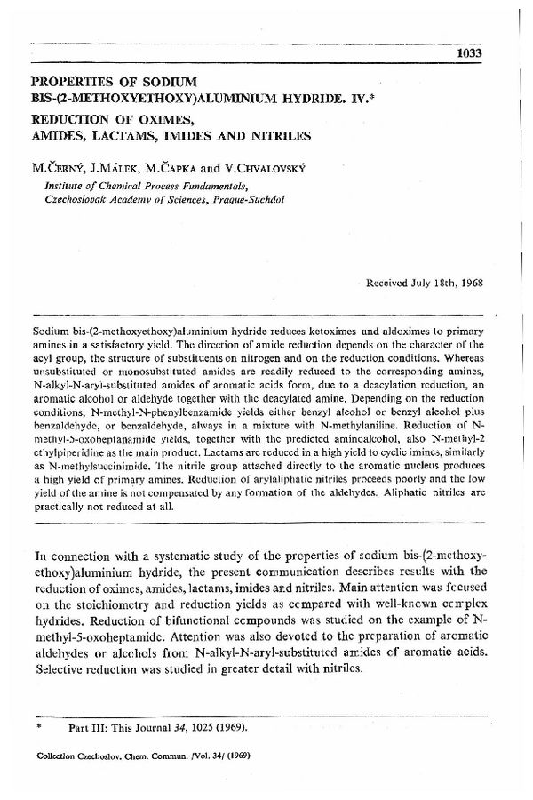 This article is part of serial Properties of sodium bis(2-methoxyethoxy)aluminum hydride.