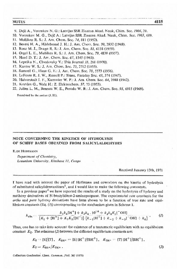 Note concerning the kinetics of hydrolysis of Schiff bases obtained from salicylaldehydes