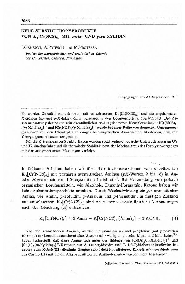 Neue Substitutionsprodukte von K3[Cr(NCS)6] mit meta- und para-Xylidin