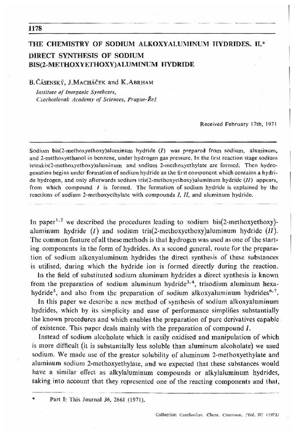 This article is part of serial The chemistry of sodium alkoxyaluminium hydrides.