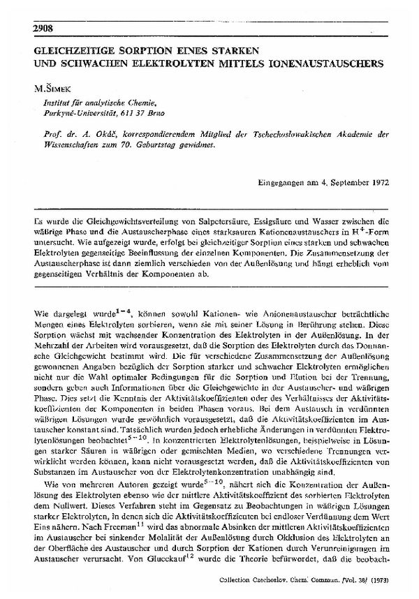 Gleichzeitige Sorption eines starken und schwachen Elektrolyten mittels Ionenaustauschers