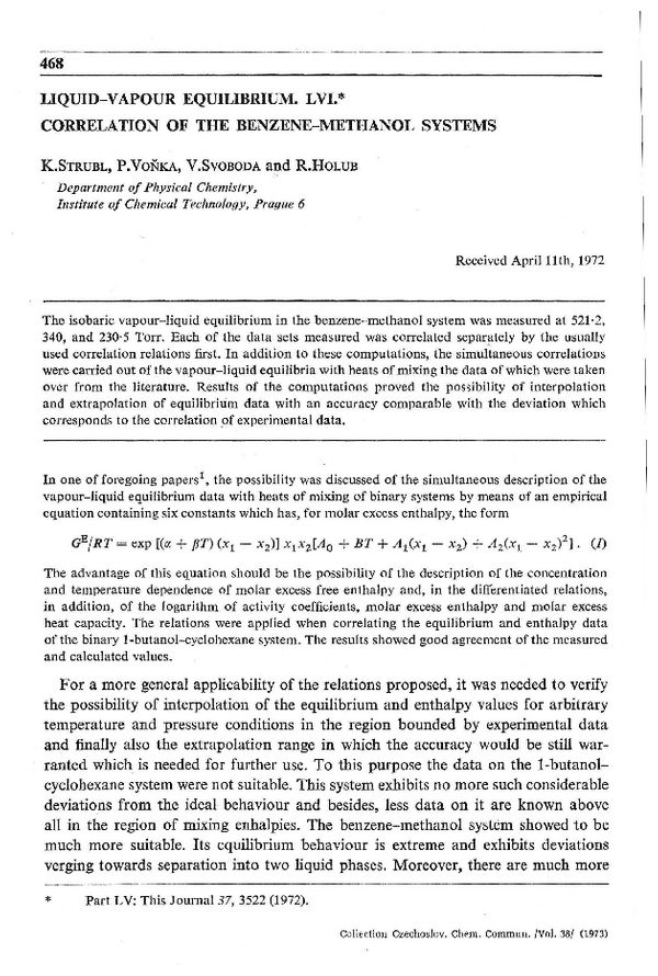 Liquid-vapour equilibrium LVI. Correlation of the benzene-methanol systems