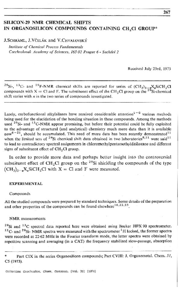 Silicon-29 NMR chemical shifts in organosilicon compounds containing CH2Cl group