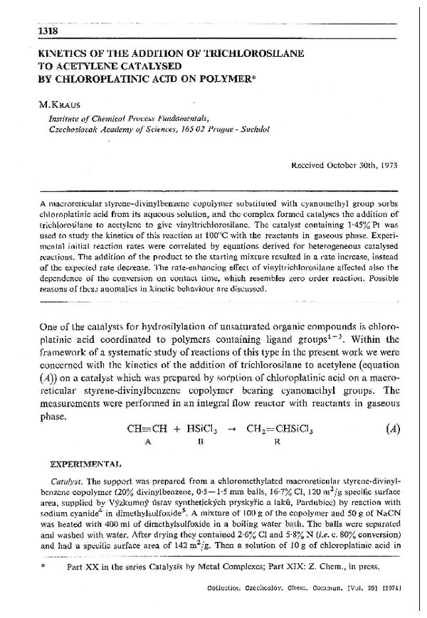 Kinetics of the addition of trichlorosilane to acetylene catalysed by chloroplatinic acid on polymer