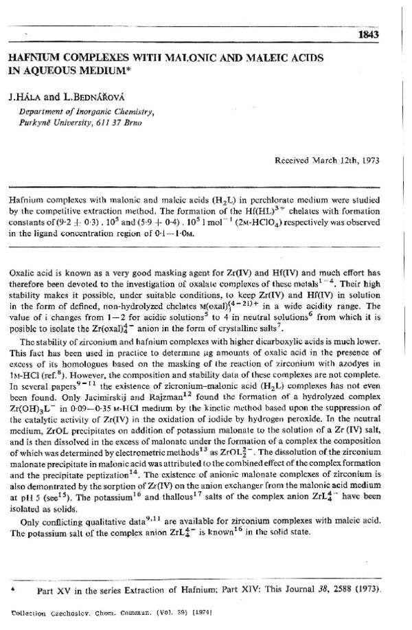 Hafnium complexes with malonic and maleic acids in aqueous medium