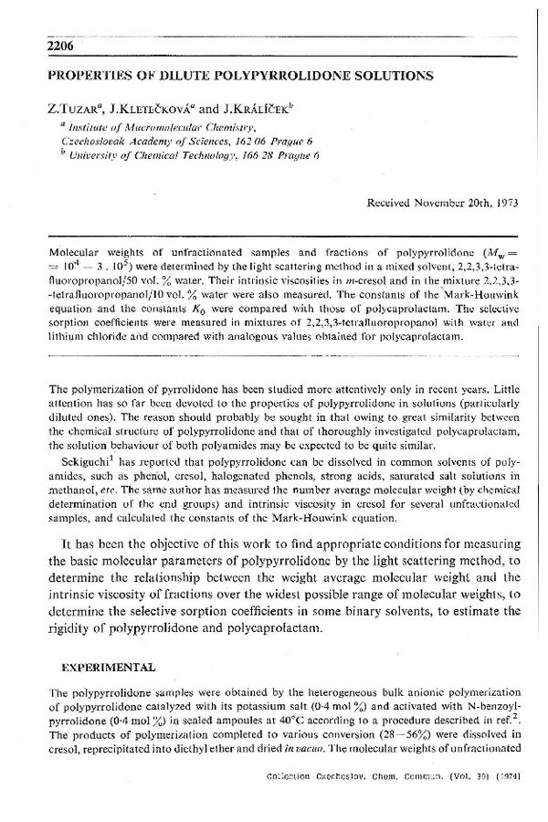 Z. Tuzar, J. Kletečková and J. Králíček