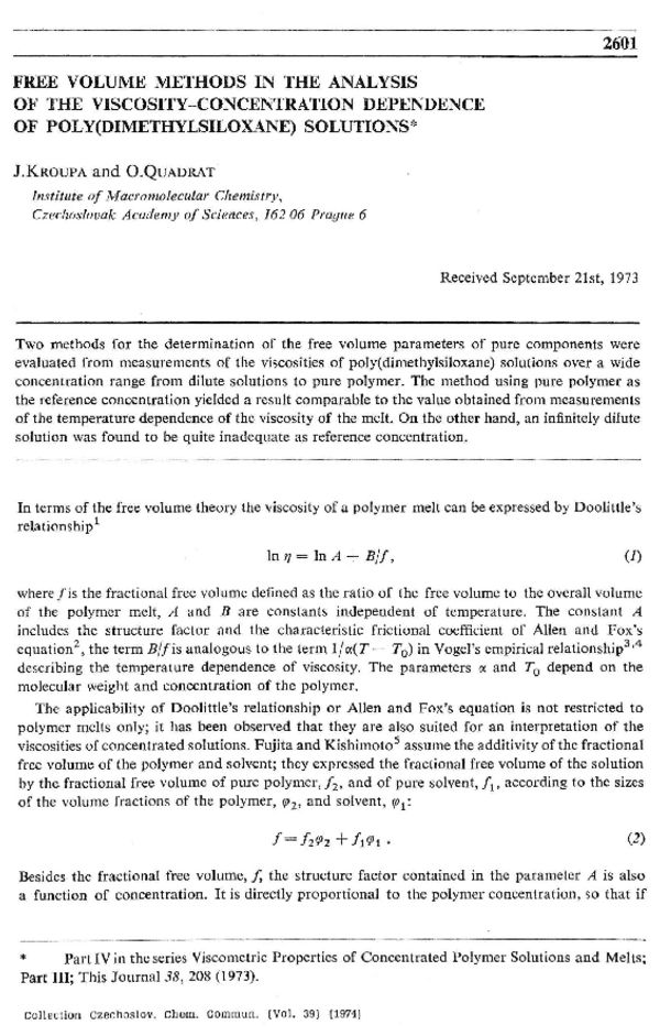 Free volume methods in the analysis of the viscosity-concentration dependence of poly(dimethylsiloxane) solutions