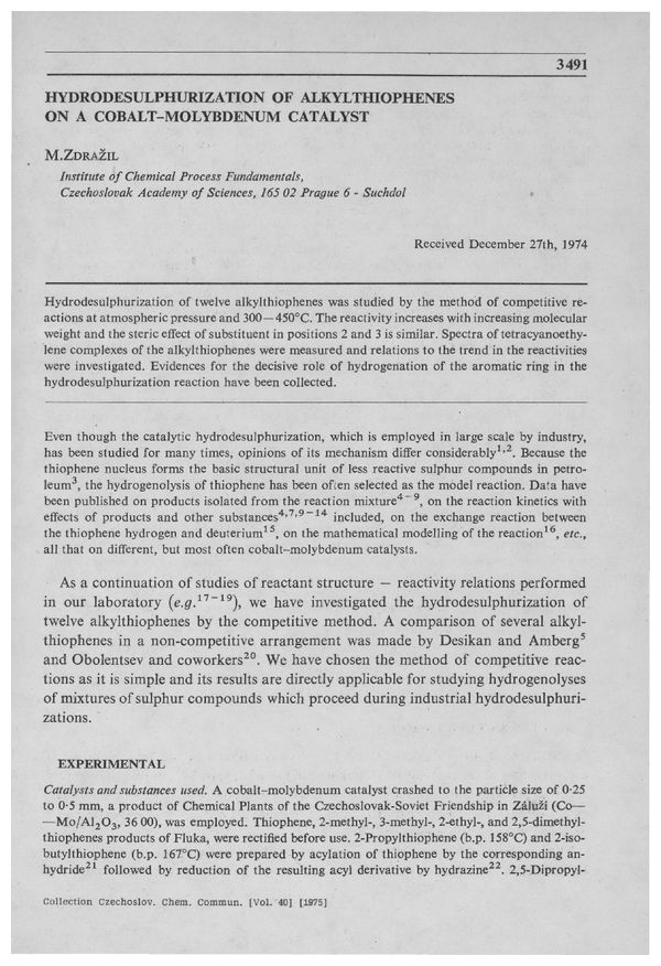 Hydrodesulphurization of alkylthiophenes on a cobalt-molybdenum catalyst