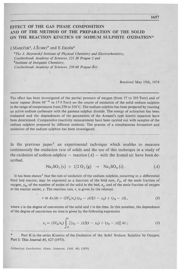 Effect of the gas phase composition and of the method of the preparation of the solid on the reaction kinetics of sodium sulphite oxidation