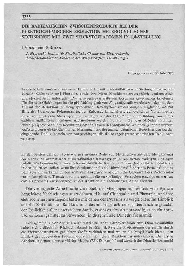 Die radikalischen Zwischenprodukte bei der elektrochemischen Reduktion heterocyclischer Sechsringe mit zwei Stickstoffatomen in 1,4-Stellung