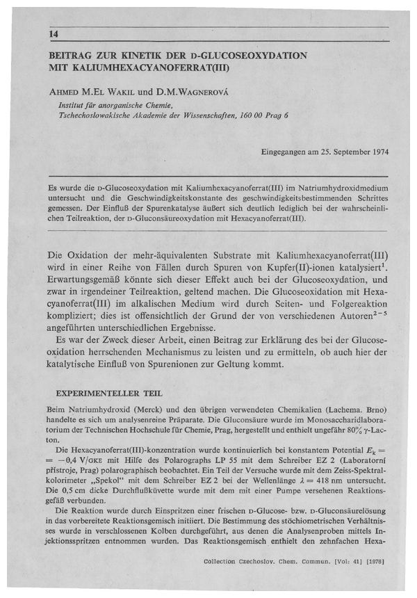Beitrag zur Kinetik der D-Glucoseoxydation mit Kaliumhexacyanoferrat(III)