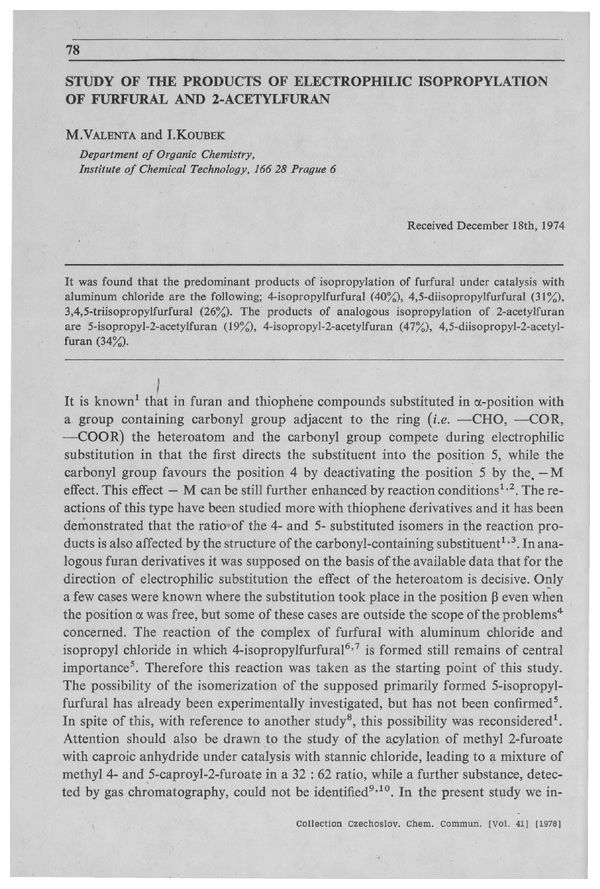 M. Valenta and I. Koubek