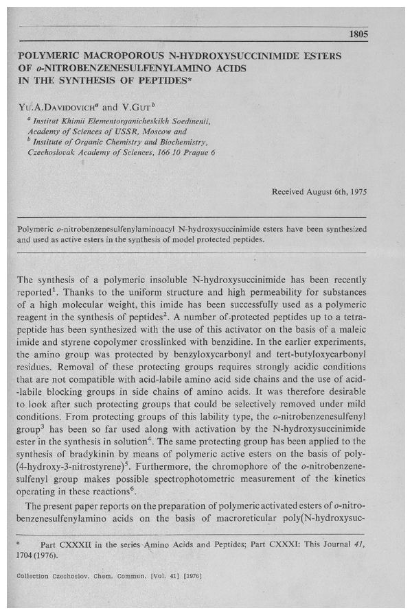 Polymeric macroporous N-hydroxysuccinimide esters of o-nitrobenzenesulfenylamino acids in the synthesis of peptides