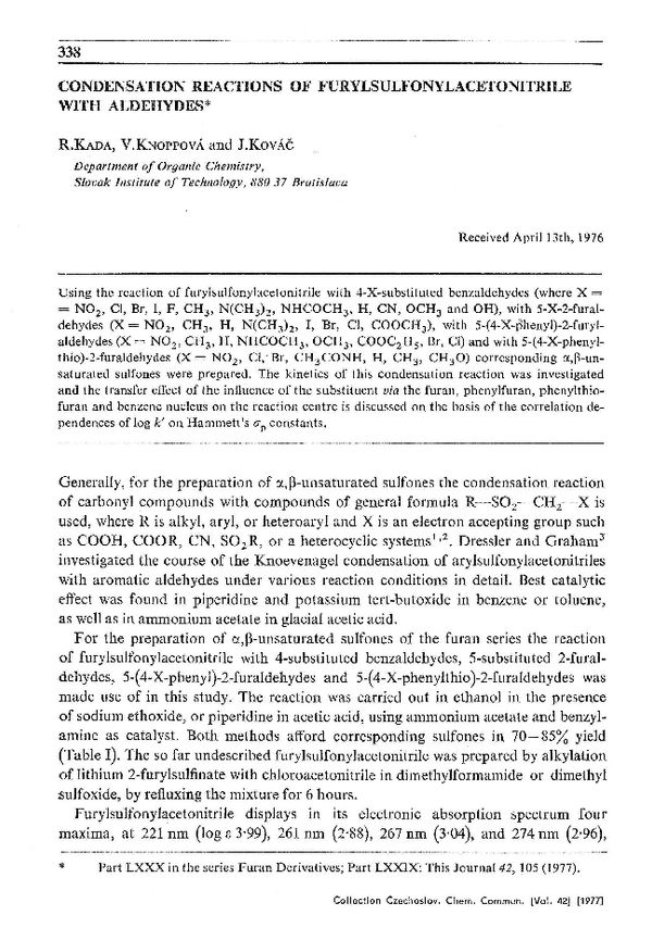 Condensation reactions of furylsulfonylacetonitrile with aldehydes