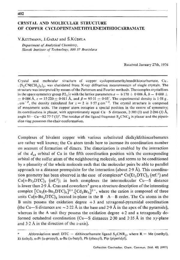 Crystal and molecular structure of copper cyclopentamethylenedithiocarbamate