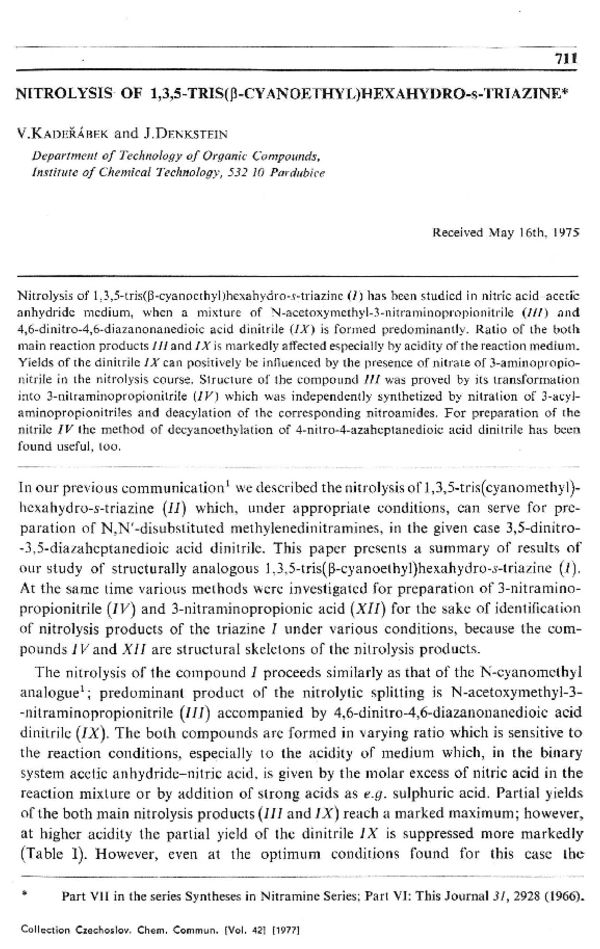 Nitrolysis of 1,3,5-tris(β-cyanoethyl)hexahydro-s-triazine
