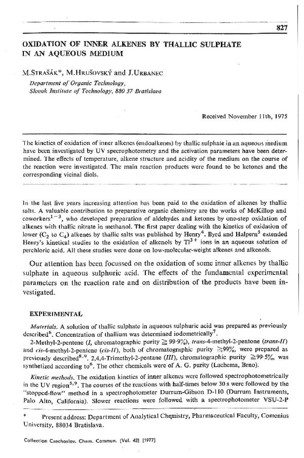 Oxidation of inner alkenes by thallic sulphate in an aqueous medium