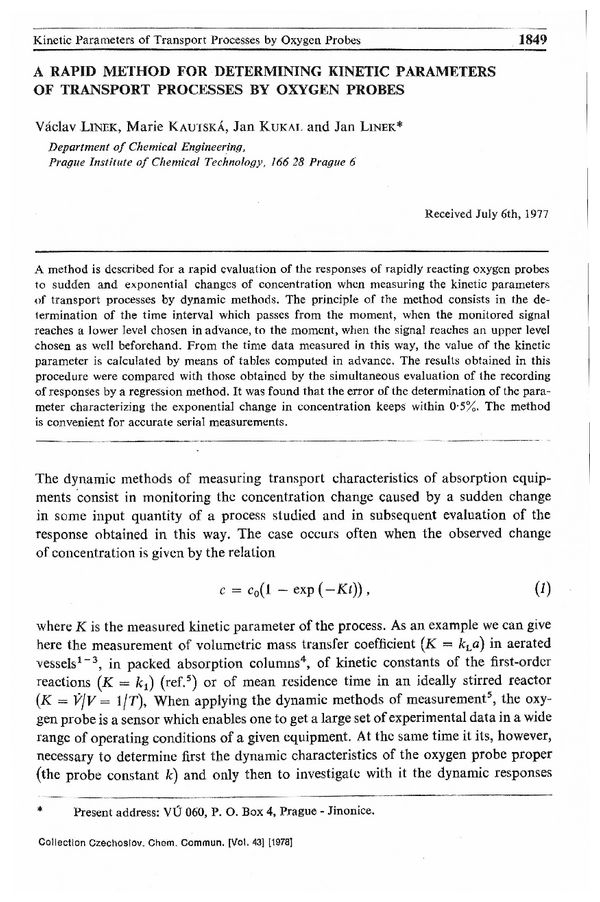 A rapid method for determinig kinetic parameters of transport processes by oxygen probes