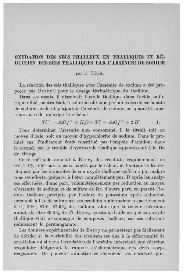 Oxydation des sels thalleux en thalliques et réduction des sels thalliques par l'arsénite de sodium