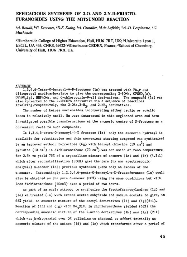 A. Bouali, G. Descotes, D. F. Ewing, A. Grouiller, J. de Lefkido, A.-D. Lespinasse and G. Mackenzie