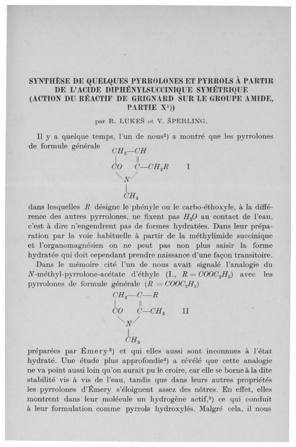 Synthèse de quelques pyrrolones et pyrrols à partir de l'acide diphénylsuccinique symétrique (Action du réactif de Grignard sur le groupe amide, Partie X)