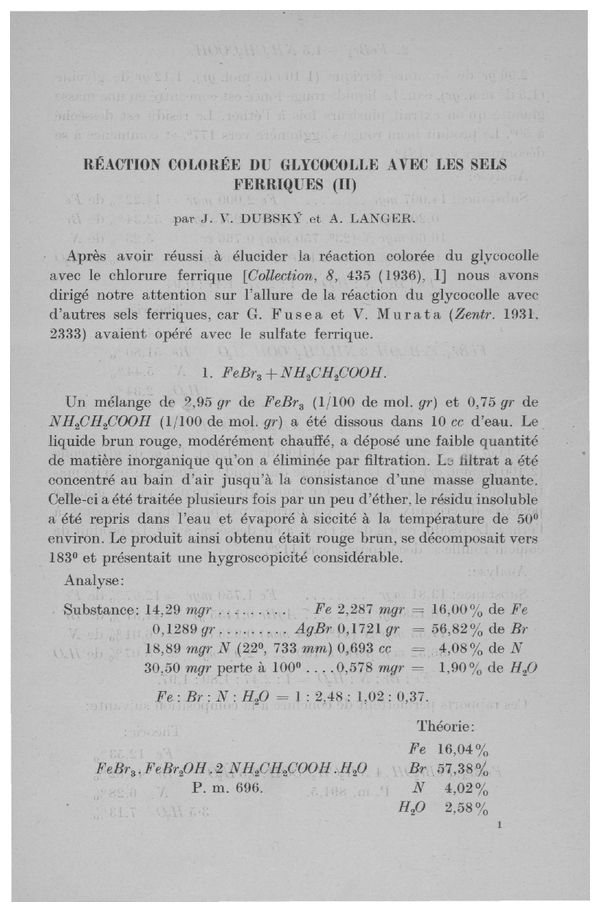 Réaction colorée du glycocolle avec les sels ferriques (II)