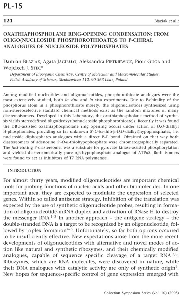 Oxathiaphospholane ring-opening condensation: from oligo(nucleoside phosphorothioate)s to P-chiral analogues of nucleoside polyphosphates