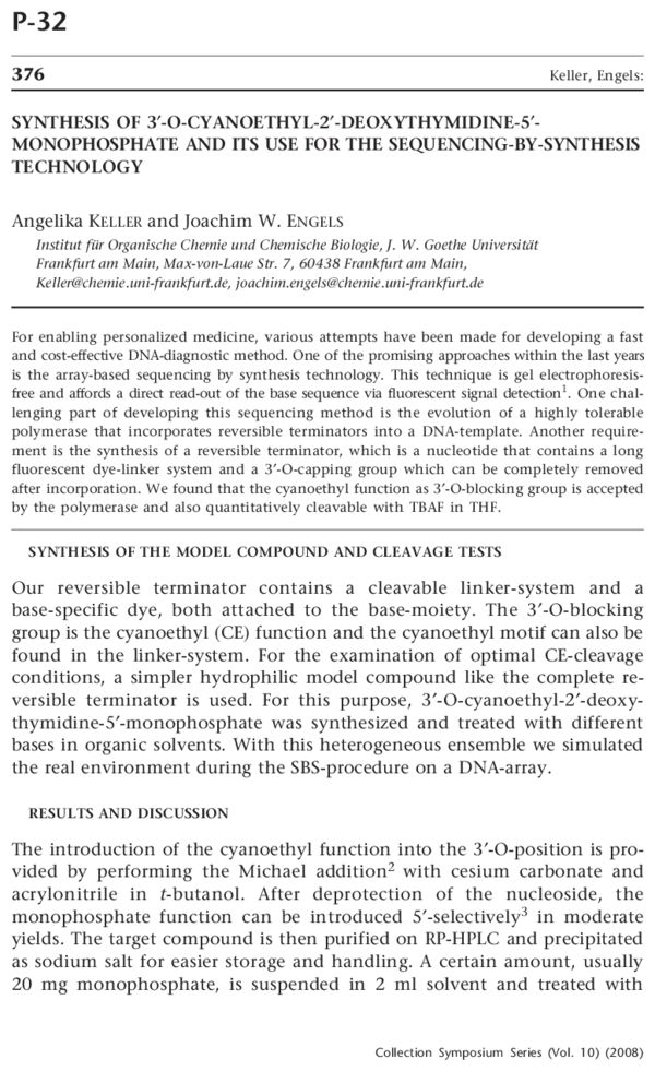 Synthesis of 3'-O-cyanoethyl-2'-deoxythymidine-5'-monophosphate and its use for the sequencing-by-synthesis technology