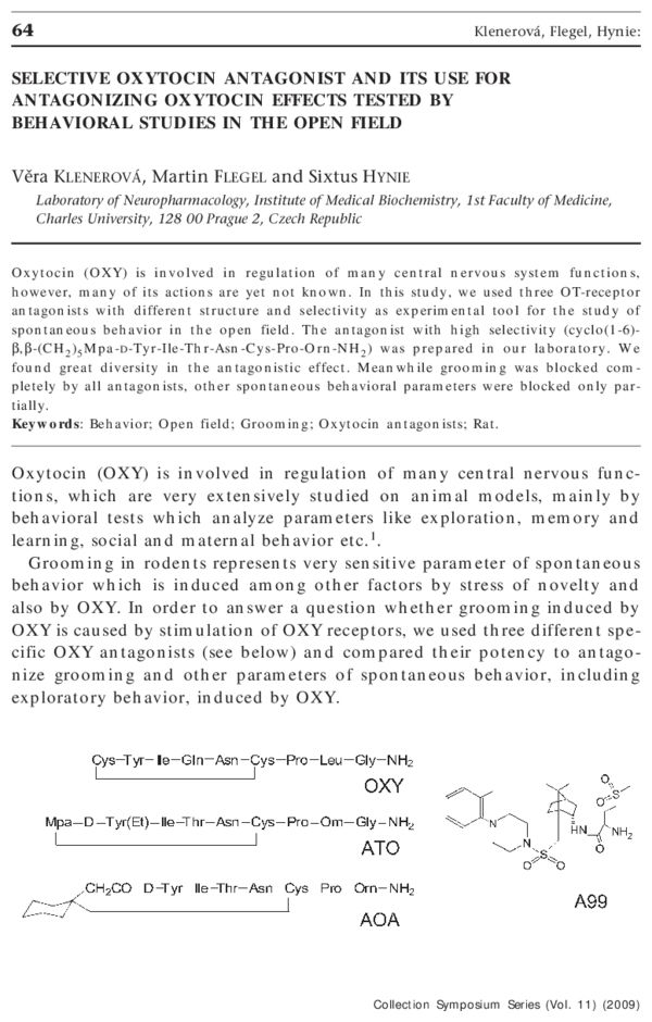 Selective oxytocin antagonist and its use for antagonizing oxytocin effects tested by behavioral studies in the open field