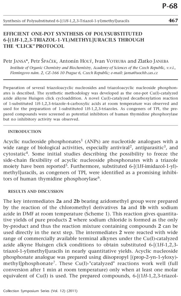 Efficient one-pot synthesis of polysubstituted 6-[(1H-1,2,3-triazol-1-yl)methyl]uracils through the "click" protocol