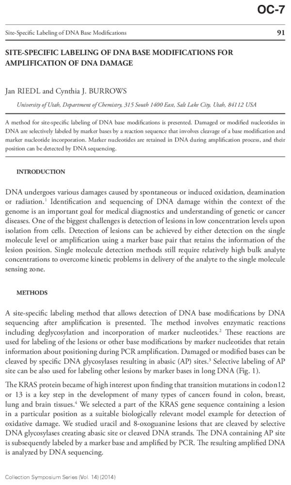 Site-specific labeling of DNA base modifications for amplification of DNA damage