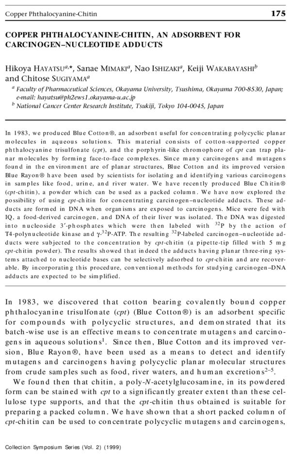 Copper phthalocyanine-chitin, an adsorbent for carcinogen–nucleotide adducts