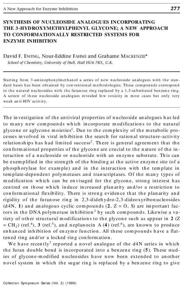 Synthesis of nucleoside analogues incorporating the 3-hydroxymethylphenyl glycone; a new approach to conformationally restricted systems for enzyme inhibition