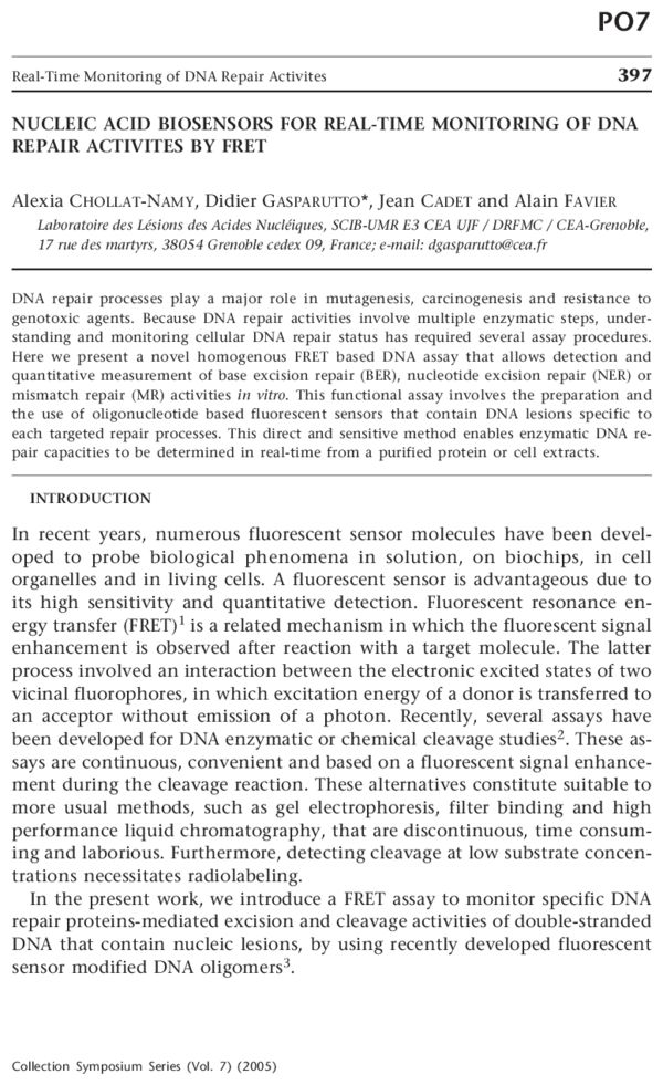 Nucleic acid biosensors for real-time monitoring of DNA repair activites by FRET